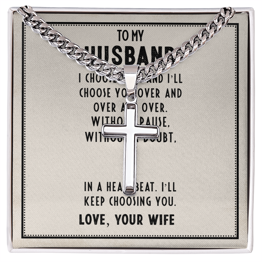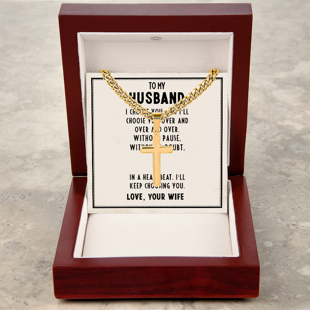 Croix artisanale avec chaîne cubaine - Pour mon père